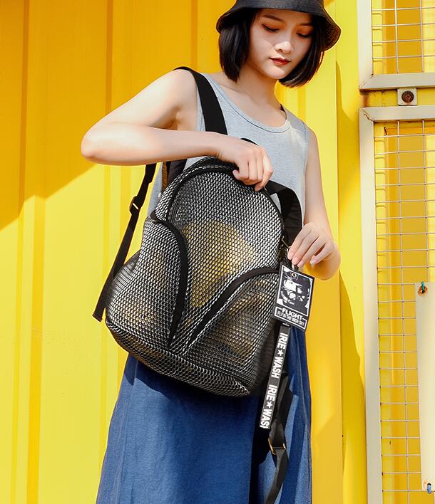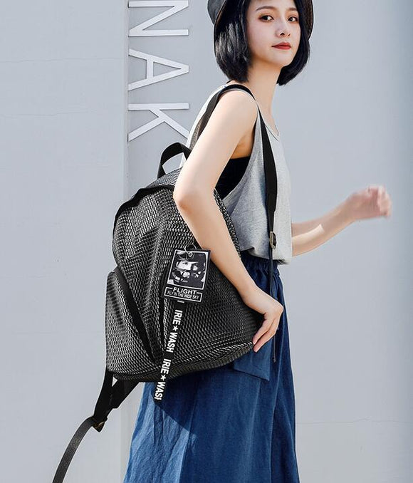 Simple Design Wshed Oxford Cotton Casual Large Backpack Women hollow out Bag Shoulder Tote Bag
