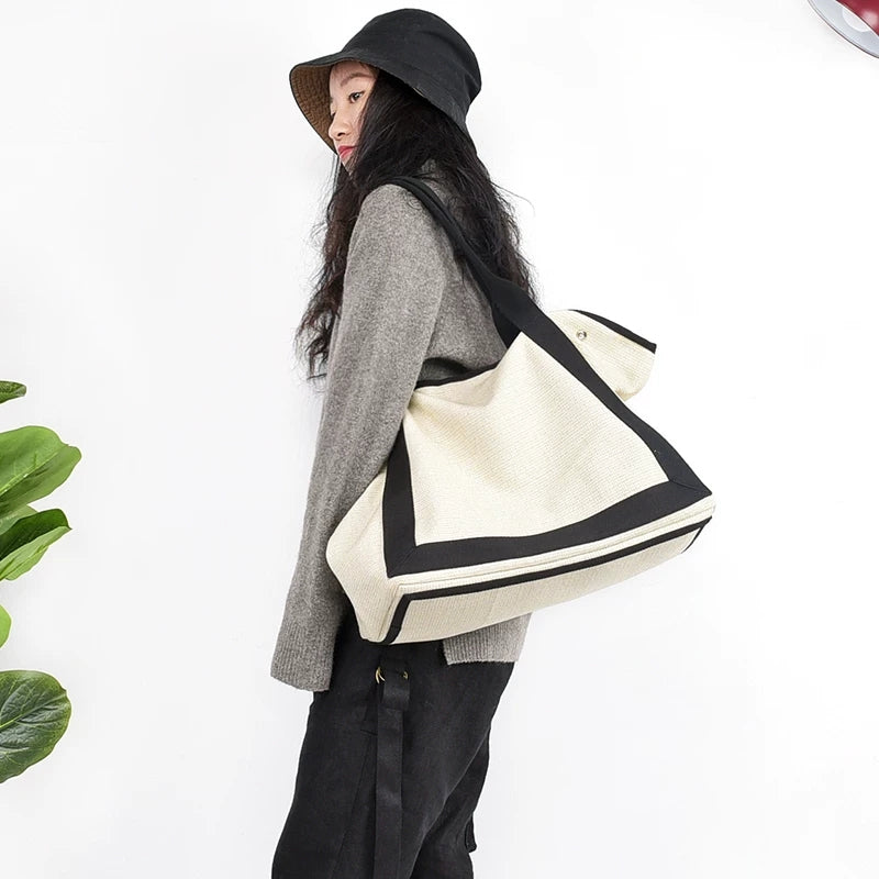 Unique design women large bag women canvas backpack canvas shoulder bag.