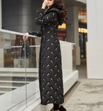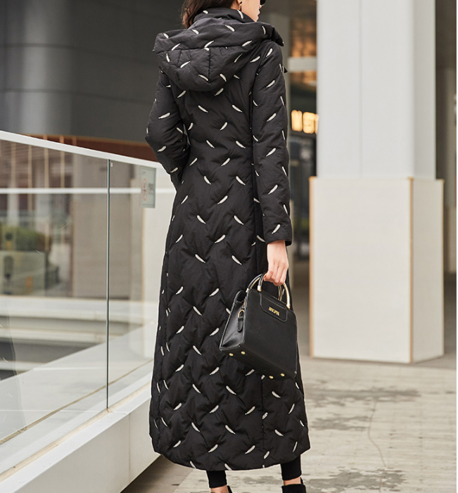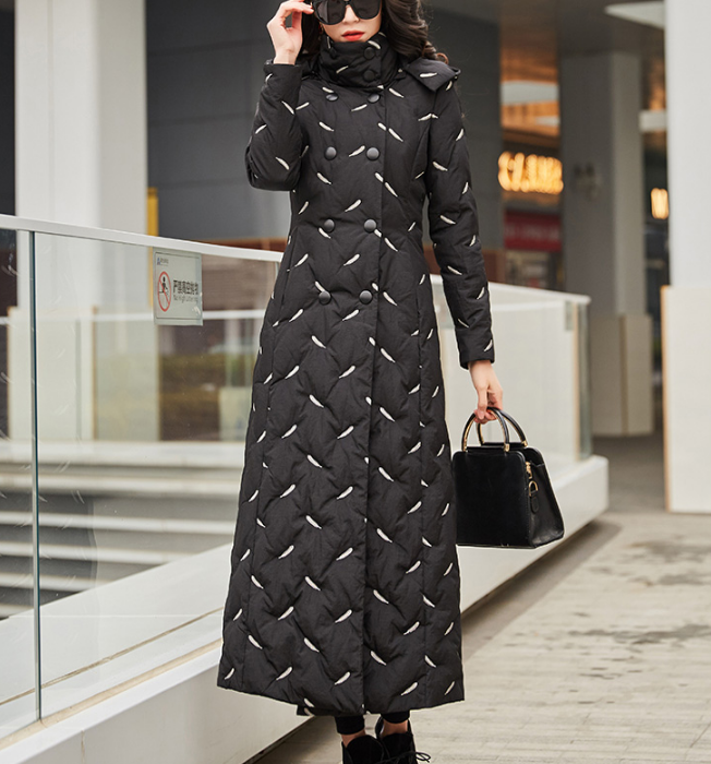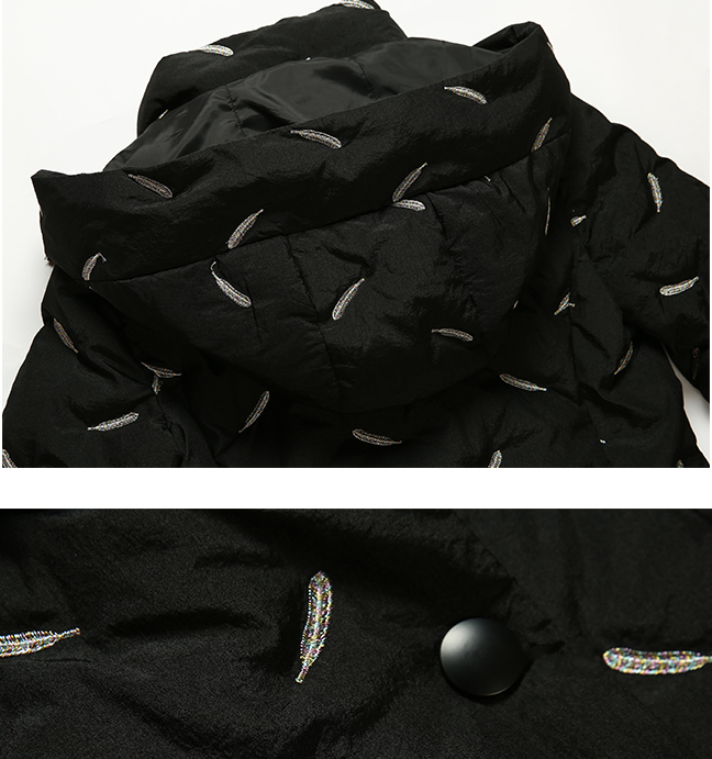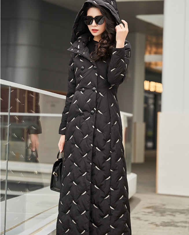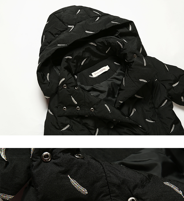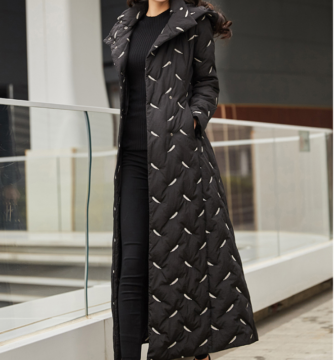 Feather Embroidery Women Winter Long Puffer Coat Warm Thick Duck Down Coat 1102