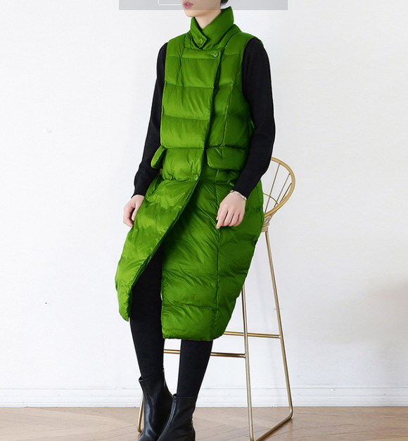 Stand Collar Puffer Coat Long Vest Winter Women Down Jacket 1008