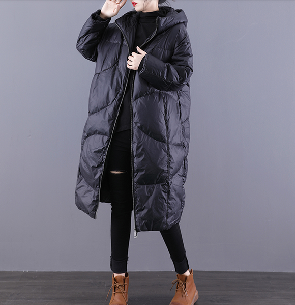 Gray Casual Long Hooded Puffer Coat,Loose Winter Women Down Jacket AMT1008