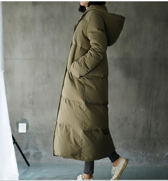 Loose Large Size Long Puffer Coat Large Pocket Down Jacket
