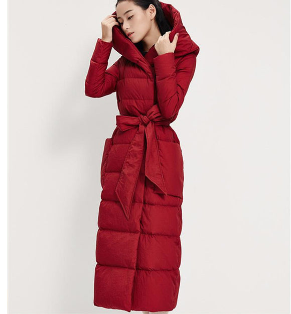 Belt Long Winter Duck Down Jacket,Winter Down Jacket Women Warm Coat