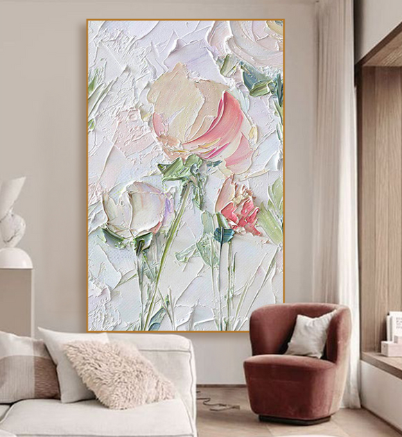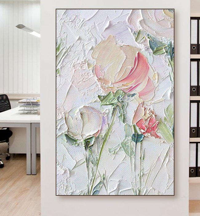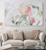 Pink large Abstract Oil Painting Original art Wall Decor, Flower Leaf painting, Modern artwork original painting on canvas