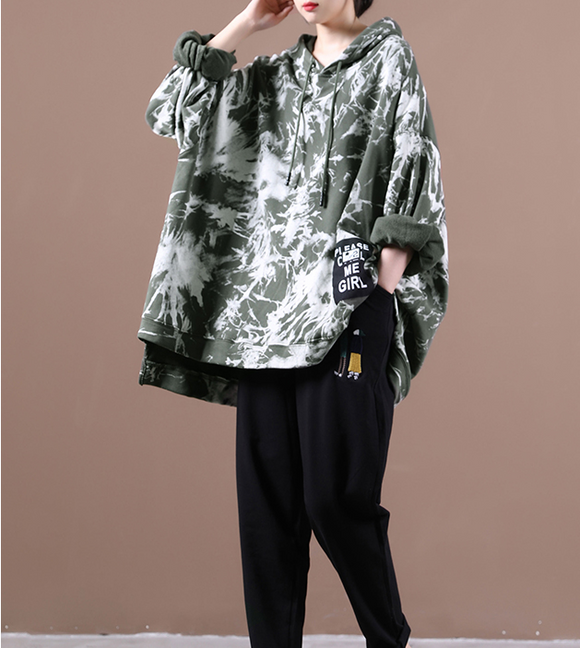 Hooded Irregular Hem loose Women Tops Woolen Knit Sweater