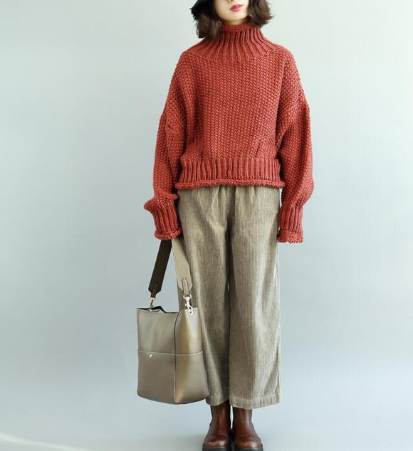 High Collar Short loose Style Women Tops Woolen Knit Sweater