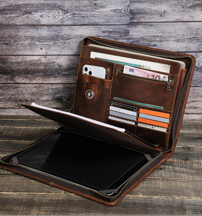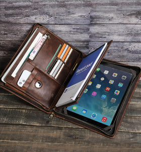 Men's Leather Portfolio, Business Briefcase, Document Folders, ipad Case, Personalized Name Engraving for Gift