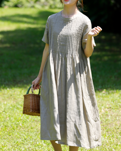 Pleated Linen Dresses, Summer long Women Dresses ,Maxi Dress 9086