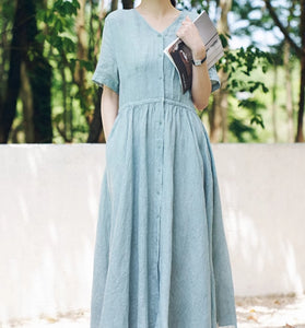 washed soft Summer Linen Sleeve Short Women Dresses.loose style,soft and breathy organic Linen fabric,very special with it's loose design.this women dresses also could be custom made any size.