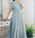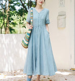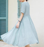 Summer Washed Soft Linen Dress Full Skirt 2211