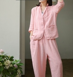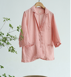 Organic Linen pink color Women tops.loose style,soft and breathy organic 100% washed linen fabric,very special with it's pink color design.this women tops jacket also could be custom made any size.