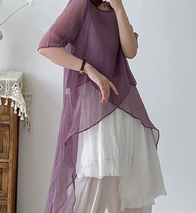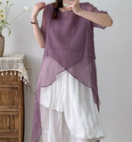 Summer Irregular Short Sleeve Shirts, Stylish Linen tops,9505