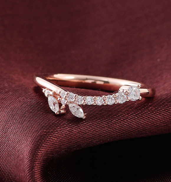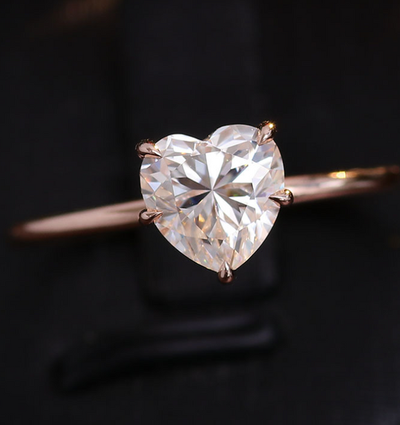 Heart Shape, 14k Solid Gold Moissanite Diamond Band,Wedding Rings, Anniversary Gift 2218
