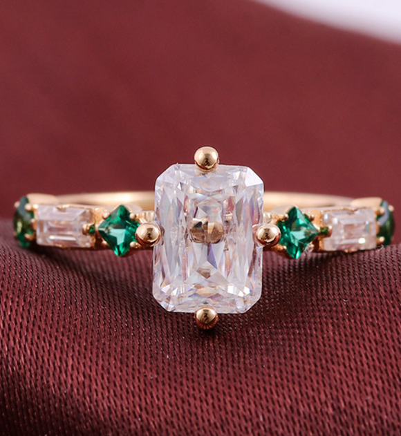 Emerald 14k Solid Gold Moissanite Diamond Band,Wedding Rings,Anniversary Gift 2265