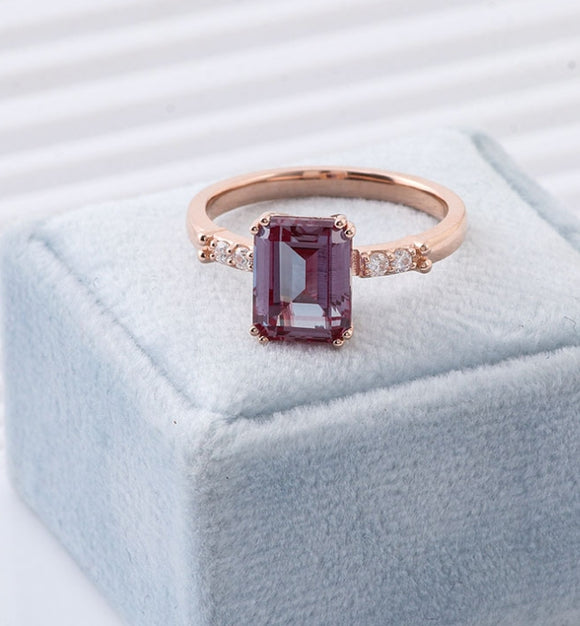 Pink Mozambique Silver Solid Gold Diamond Band,Unique Wedding Rings, Mother's Day Gift/0116