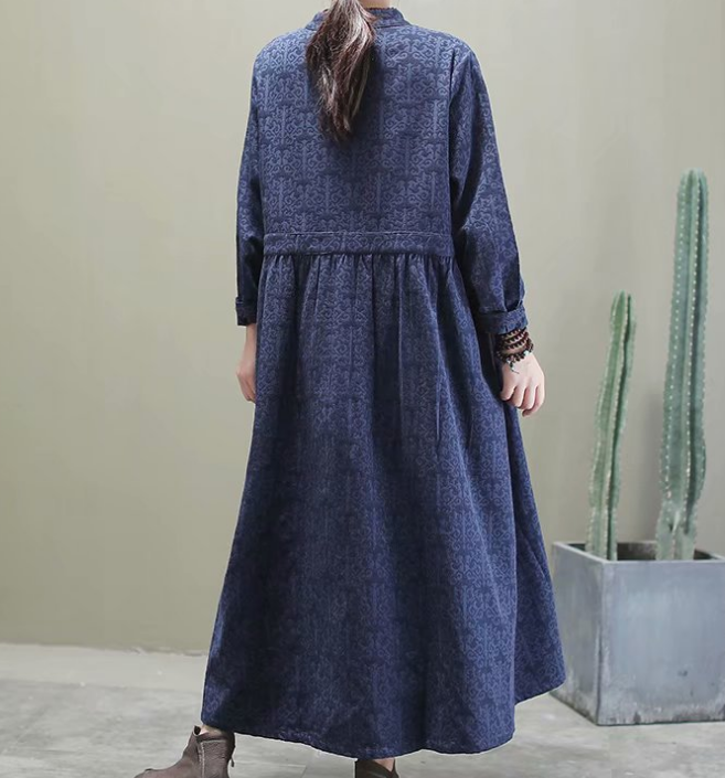 Cotton Linen Buttons Dresses Loose Winter Autumn Dresses Casual Women Dresses ZRL97213