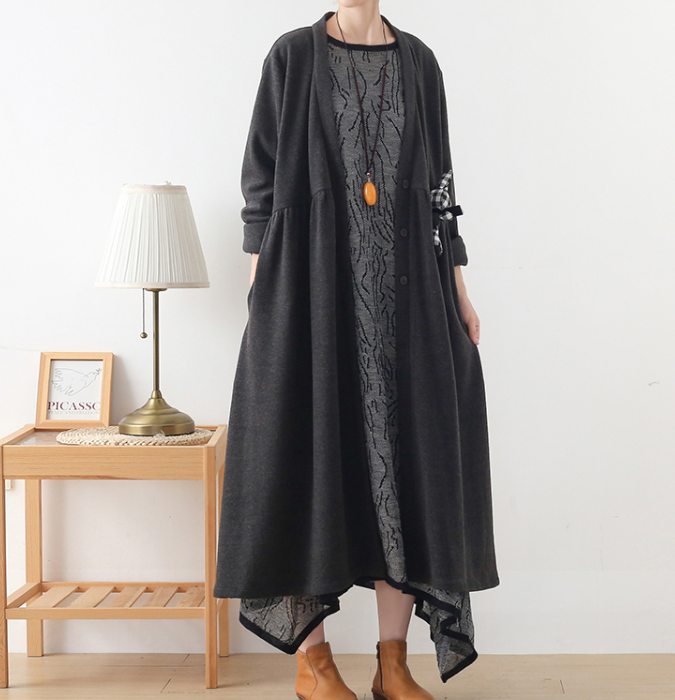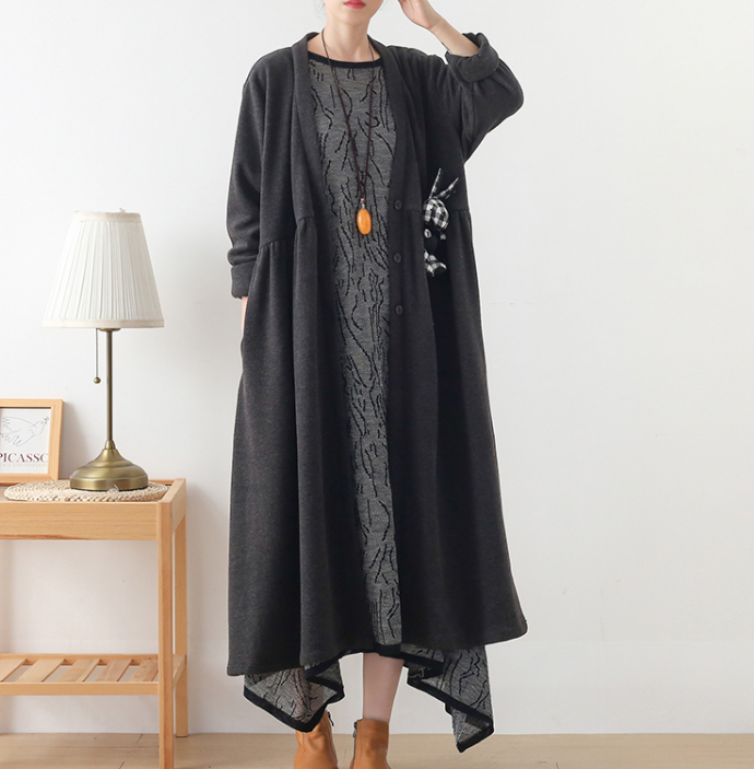 cotton Loose Style Spring fall Women Dresses.loose style,soft and breathy organic Cotton fabric,very special with it's loose design.this women dresses also could be custom made any size.