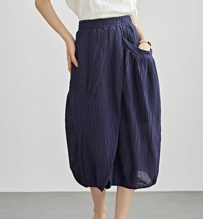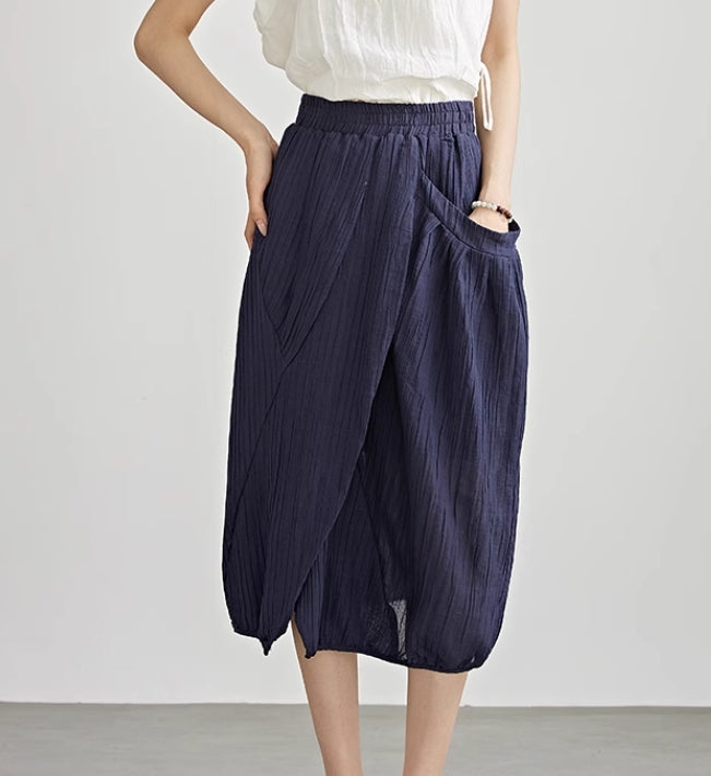 Asymmetrical Original Design High-Waisted Linen Skirt 9833