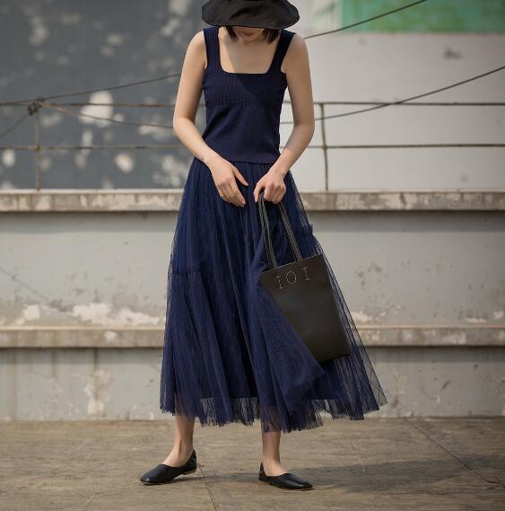Blue Women Tutu Skirts Long Chiffon Gauze Summer Women Skirts
