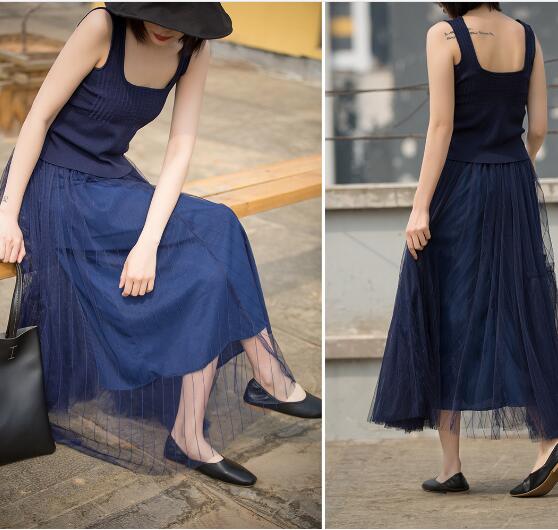 Blue women Tutu skirts long chiffon gauze summer women skirts
