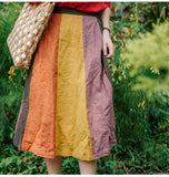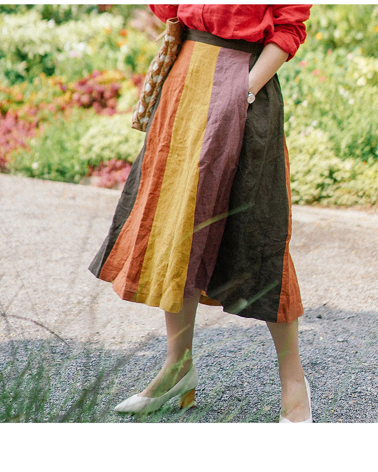 Stripe Elastic Waist Women Skirts Summer Linen Skirts H91413