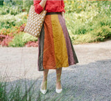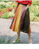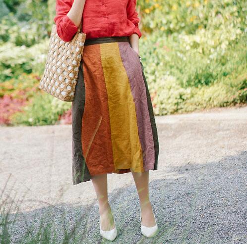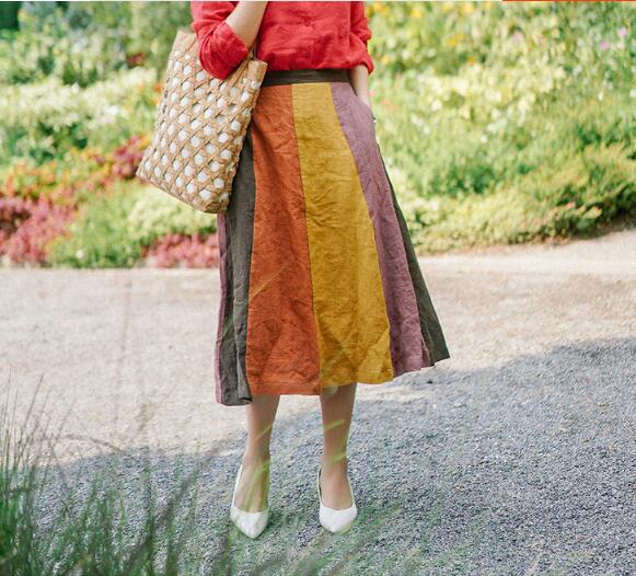 Stripe Elastic Waist Women Skirts Summer linen Skirt,design with side pockets and elastic belt.