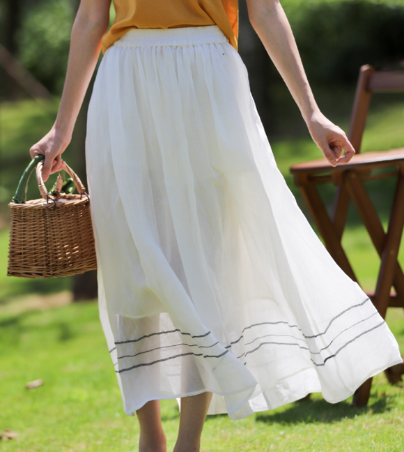 Elastic Waist Women Skirts Summer Simple Skirt,Organza fabric,soft and breathy,comfy and make you looks grace with this women Linen skirts.also could be made with any size.