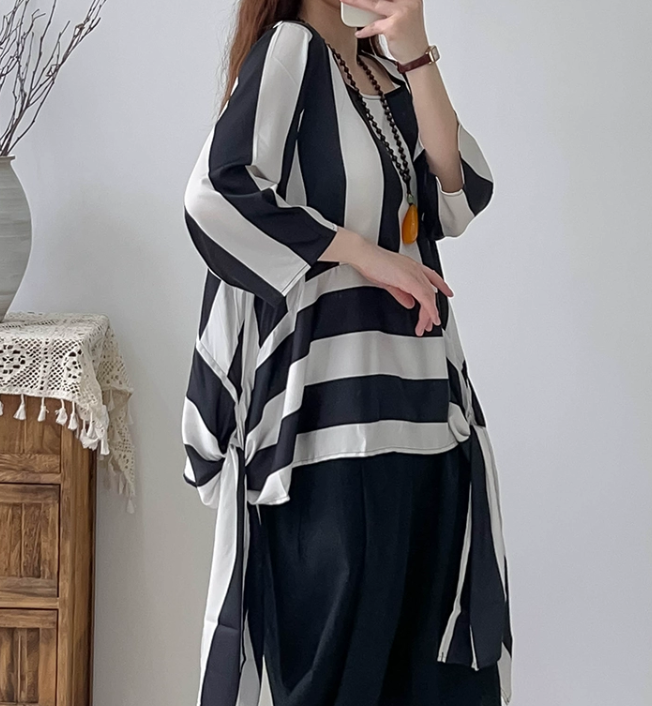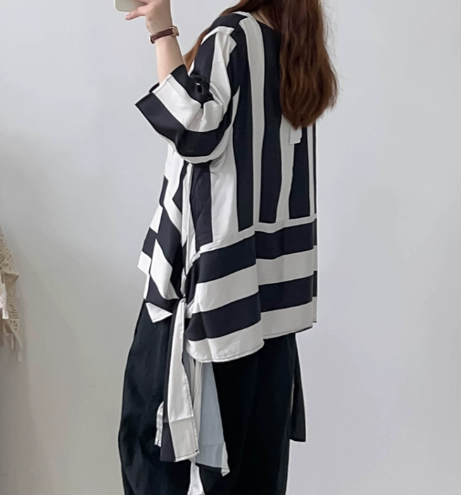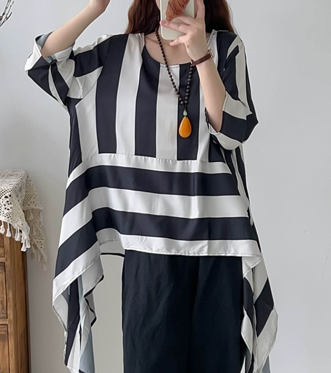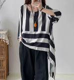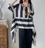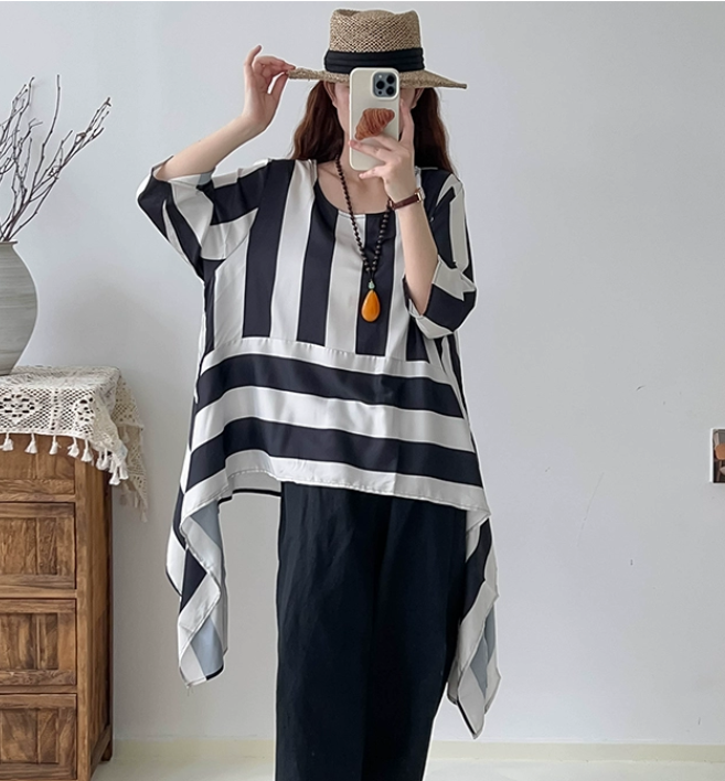 Summer Style Blouse, Striped Top Irregular T-shirt 2233