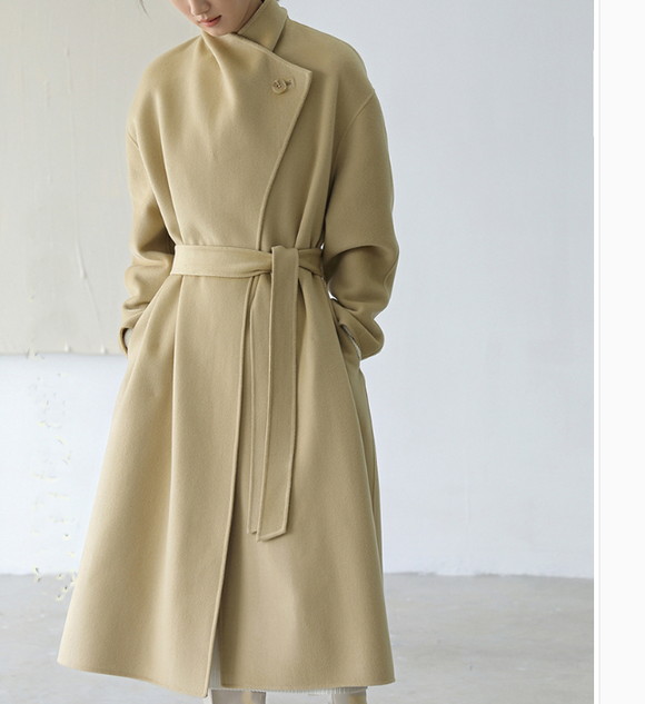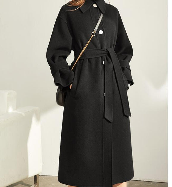 Waist Belt Wool Long Coat,Double Face Wool Coat/2222