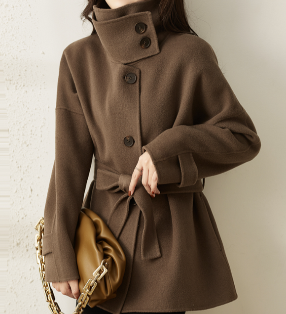 Double Face Women Coat ,Loose Wool Women Coat,Wool Coat Jacket With Waist Belt 10959