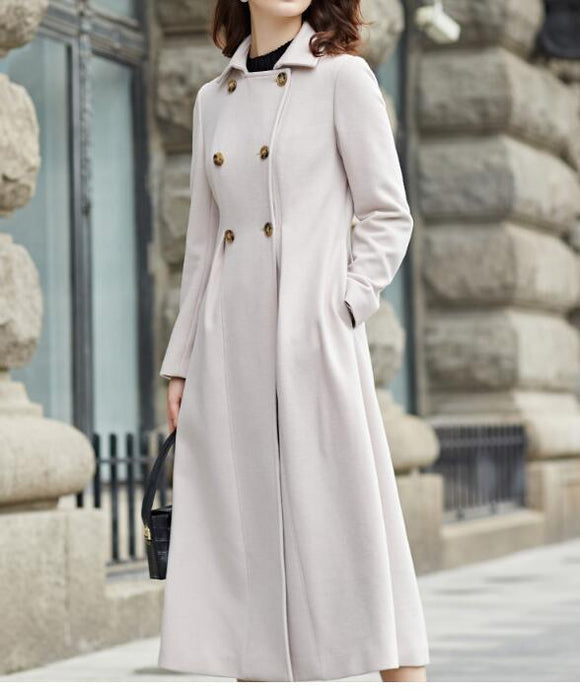 Double Breast Wool Coat, Handmade Long Warm Women Wool Coat Jacket Waist Belt/7755