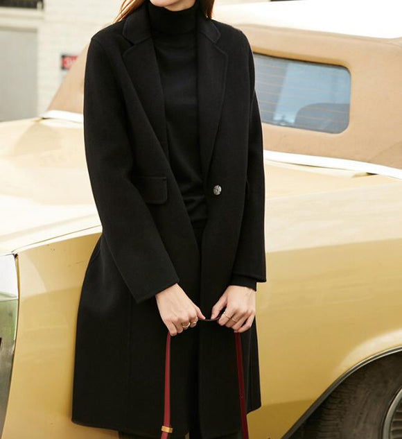 Women Mid-Length Woolen Coat Minimalist Winter Wool Coat Jacket/1955