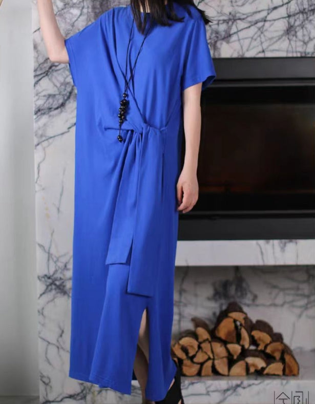 Summer Cotton Knit Irregular Long Women Dress/0122