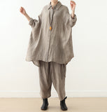 Khaki Loose Linen Spring Cardigan Summer Women Tops AMT96227
