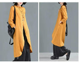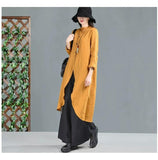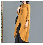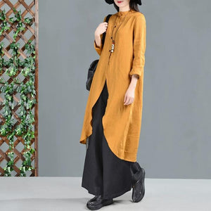 Yellow Linen Shirts Dresses 3/4 Sleeves Long Shirts CH90423