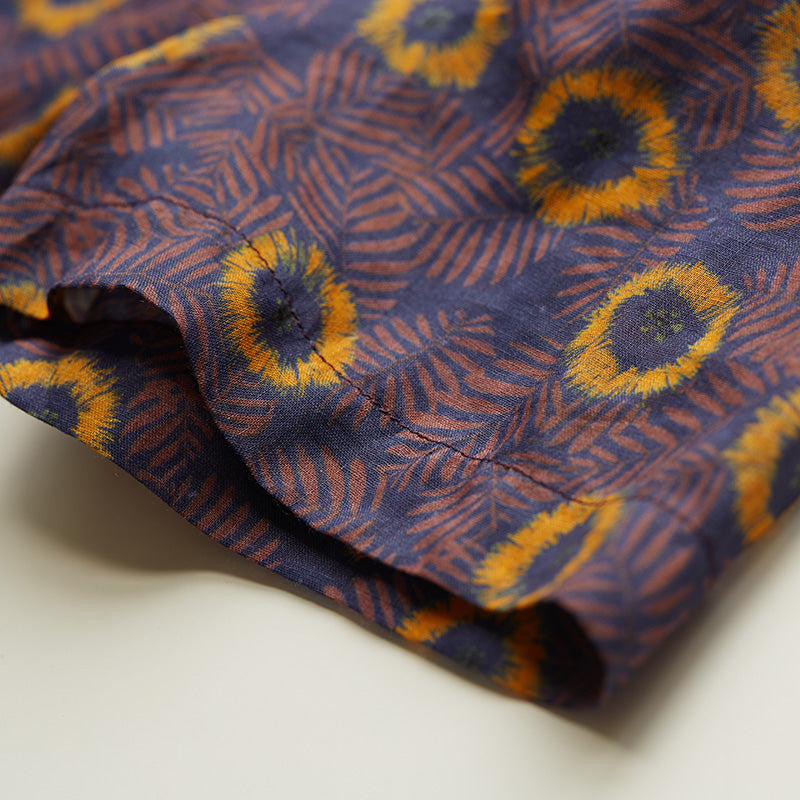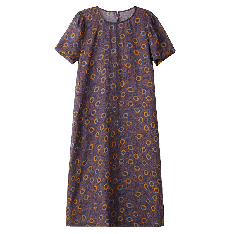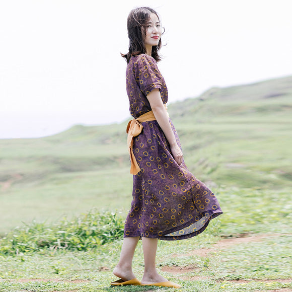 Purple Floral Linen Women Dresses Short Sleeves Summer Women Dresses XH9624