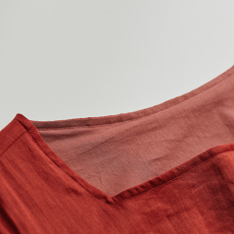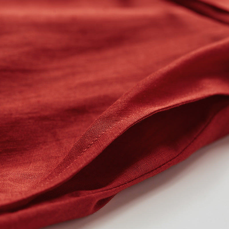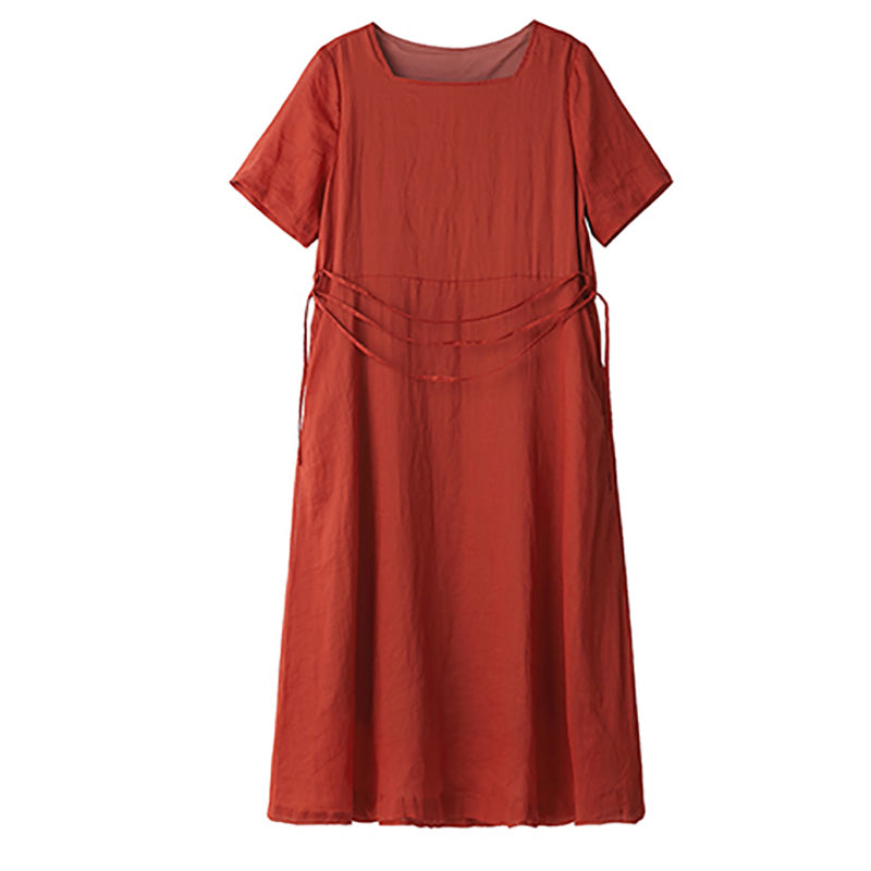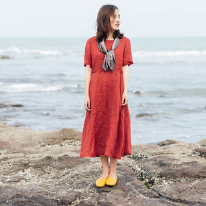 Red 100% Linen Women Dresses 3/4 Sleeves O Neck Spring Summer Women Dresses XH9631