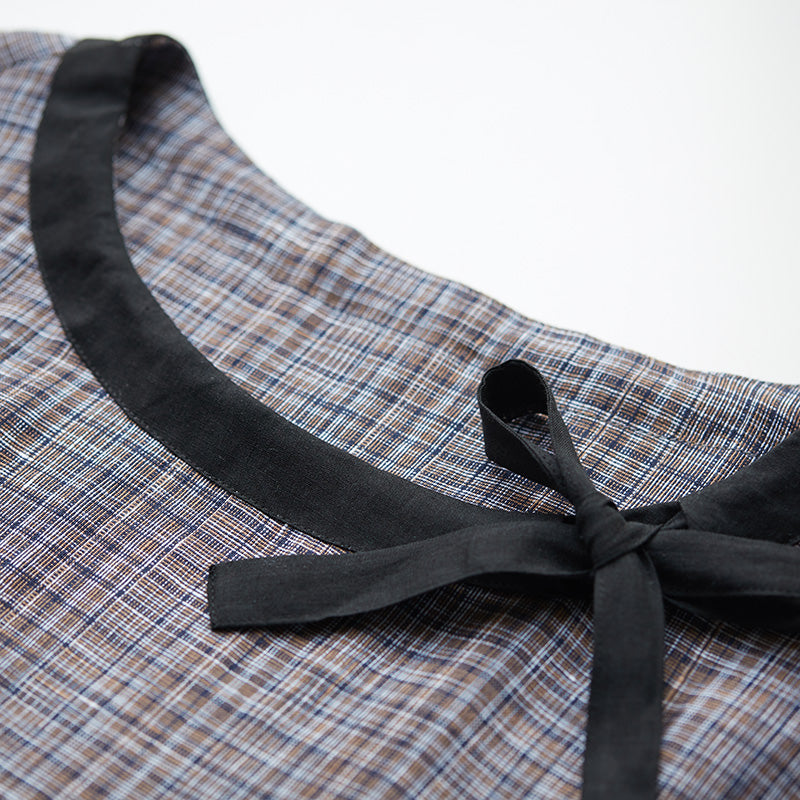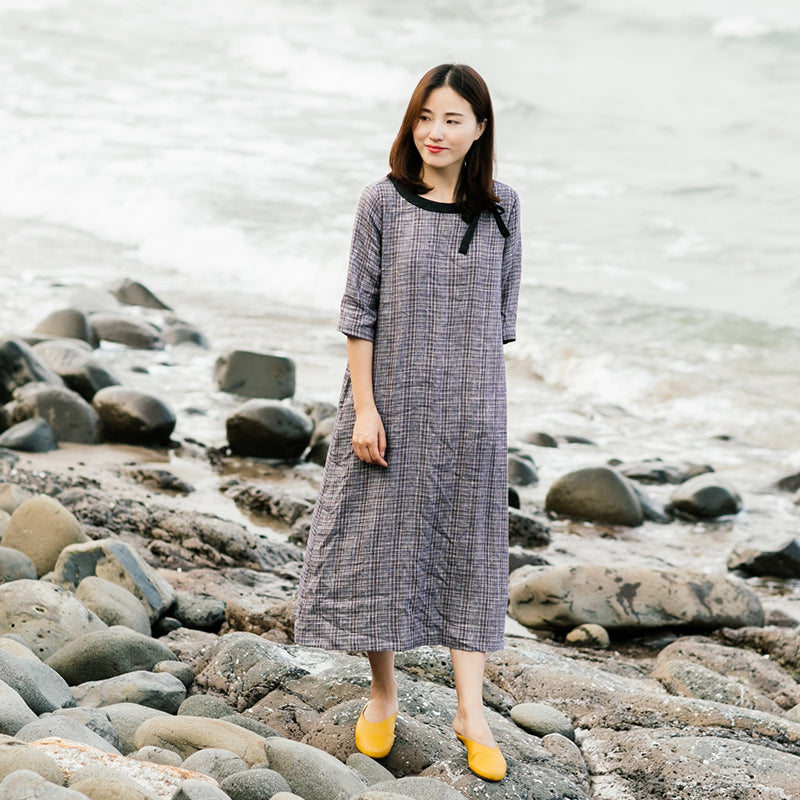 Grey 100% Linen Women Dresses 3/4 Sleeves U Neck Spring Summer Women Dresses XH9646
