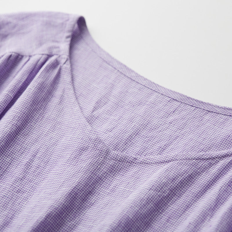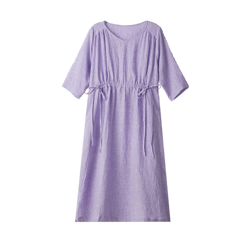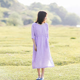 Light Purple Linen Women Dresses Half Sleeves U Neck Midi Dresses XH9647
