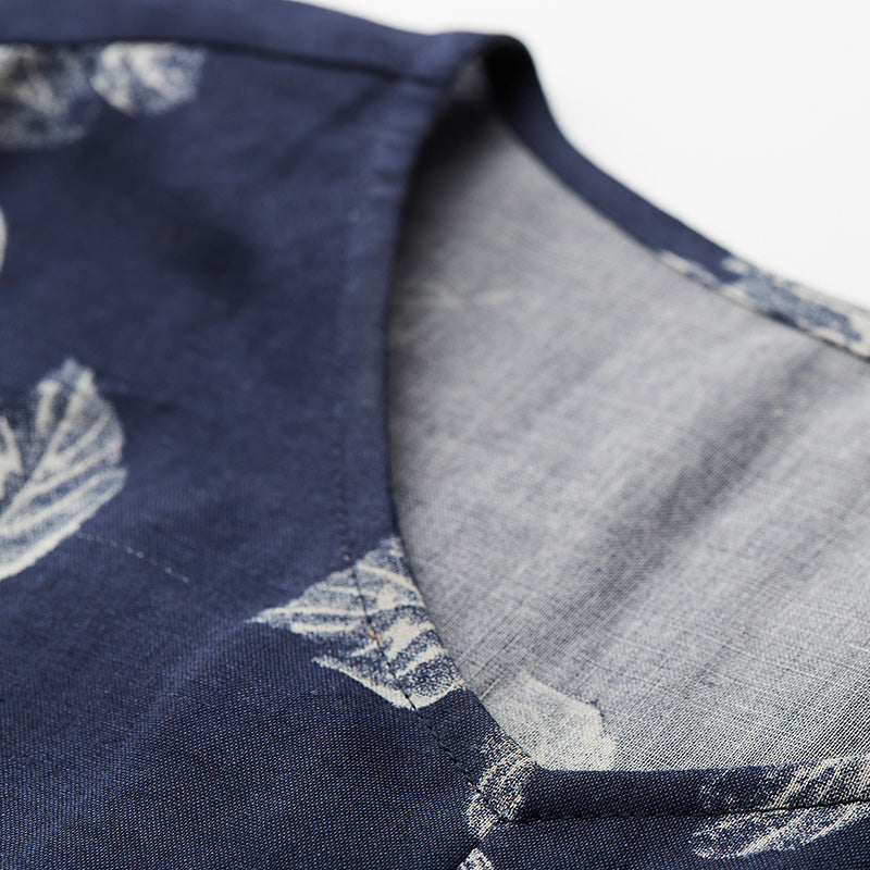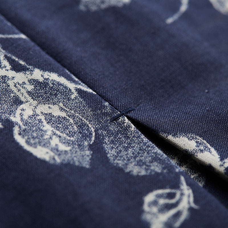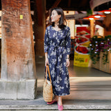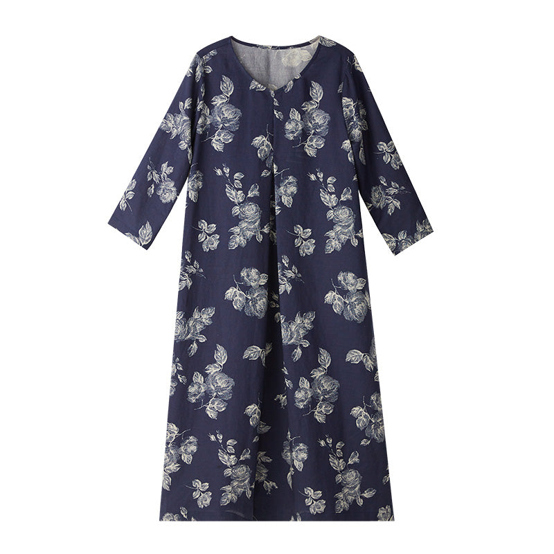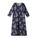 Floral 100% Linen Women Dresses 3/4 Sleeves O Neck Spring Summer Women Dresses XH9673