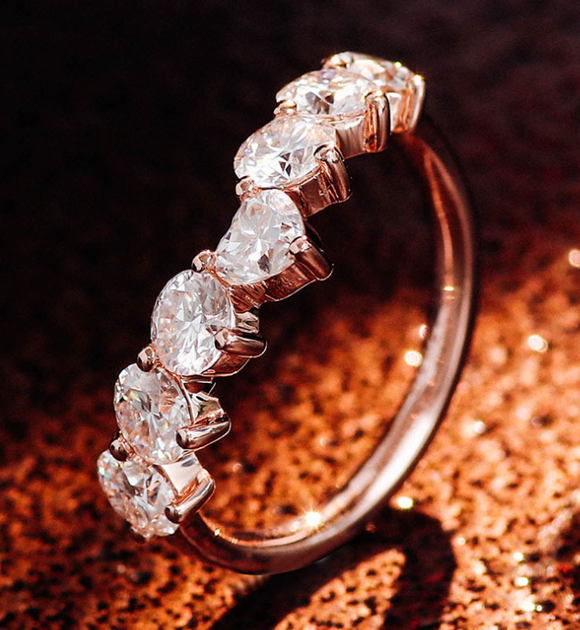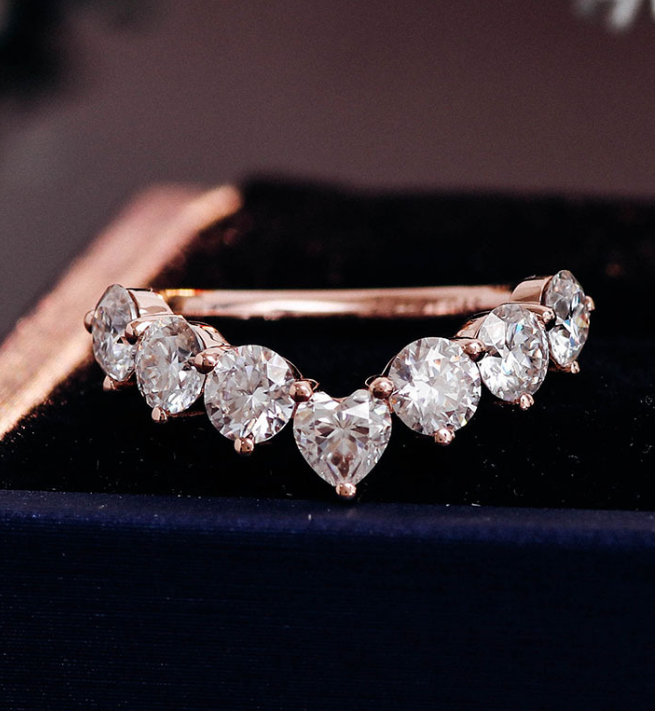 14k Solid Gold Heart Diamond Band, Natural Brilliant Diamond Ring, Wedding Rings, Anniversary Gift 001