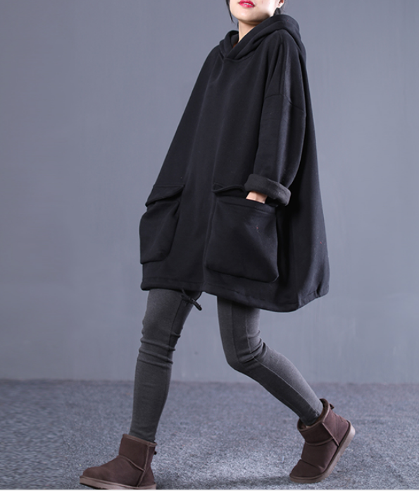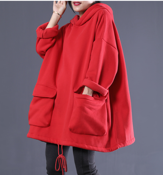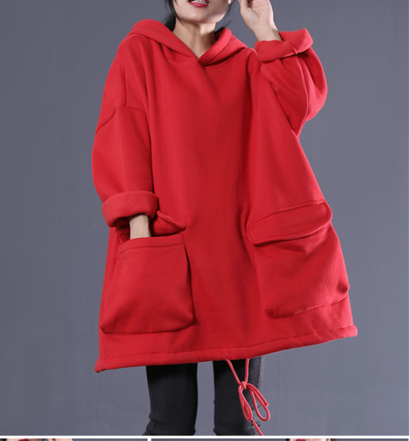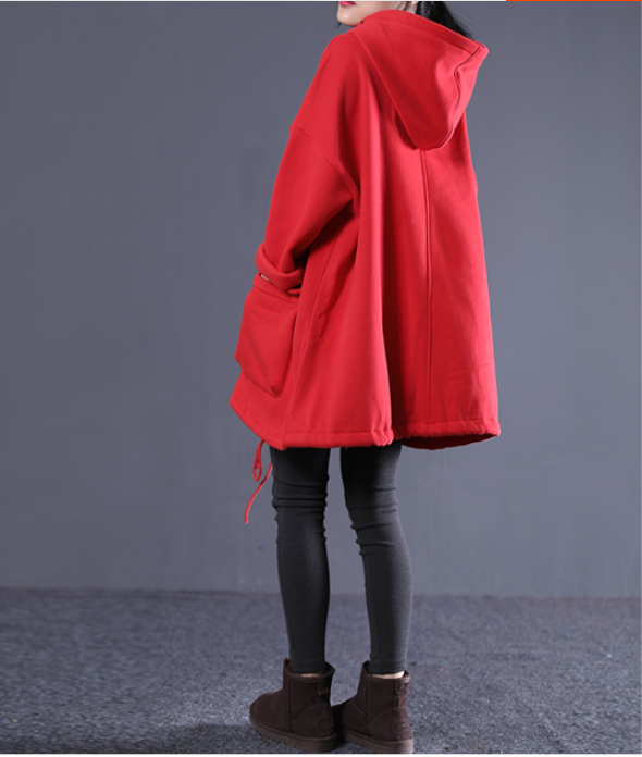 A-Line Hooded Loose Fall Women Cotton Tops Women Blouse H9506RED
