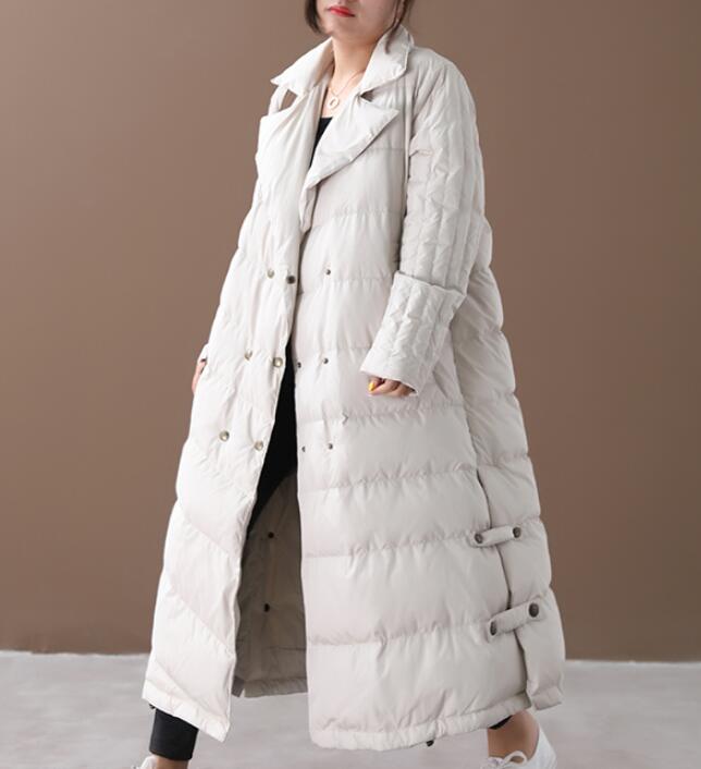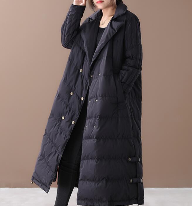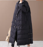 A-line Long Winter Puffer Coat Side Pockets Down Jacket Women Down Coats 2330