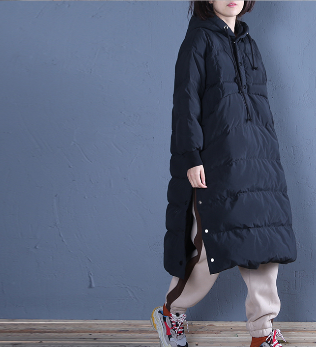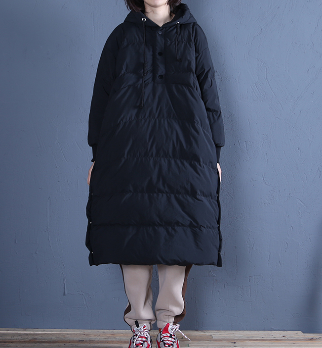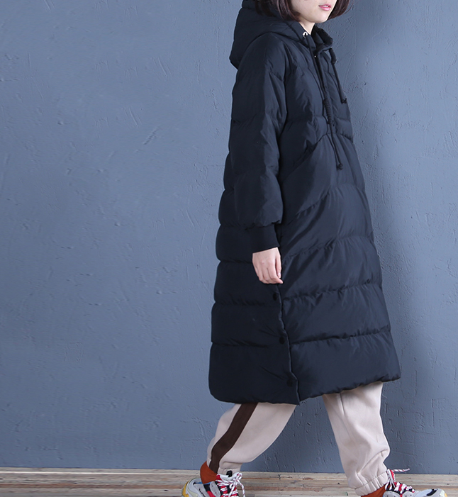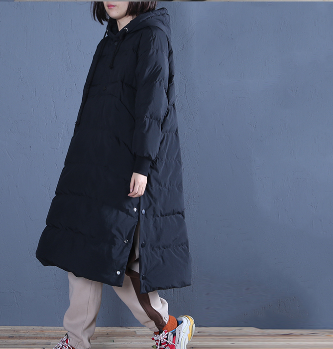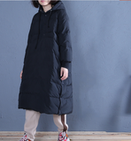 Black A-line Casual Long Hooded Winter Women Down Jacket