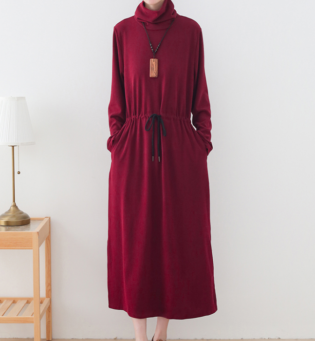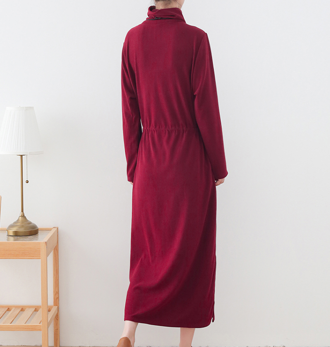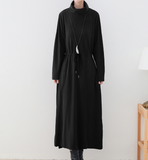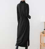 Black High Collar Side Slit Long Sleeve Women Dresses Casual Women Dresses SSM97215