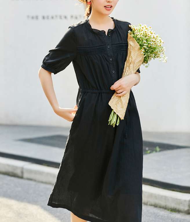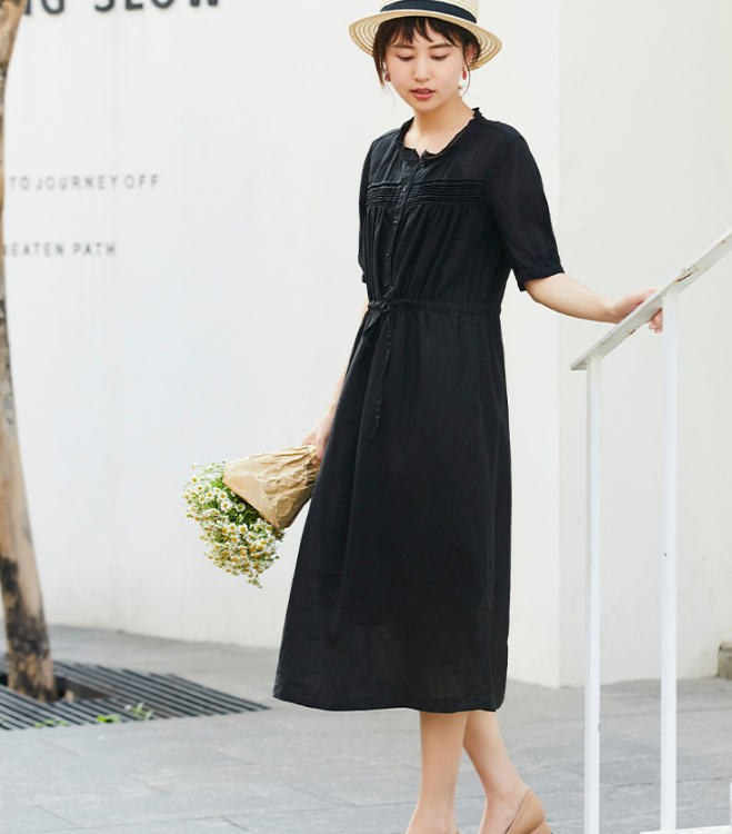 Black Women Dresses Casual Summer Linen Women Dresses SJ97215