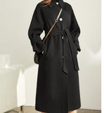 Black Woolen Winter Coat, Long Women Handmade Wool Coat Jacket/0022