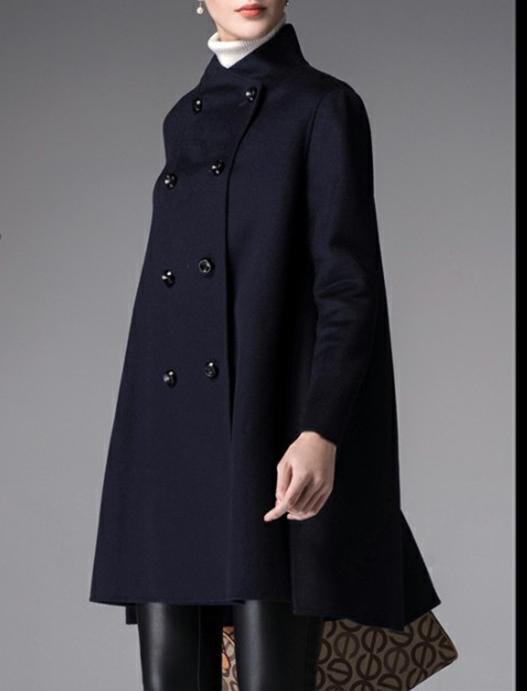 Black Women Winter Black Long Women Wool Coat Jacket/6677