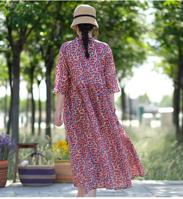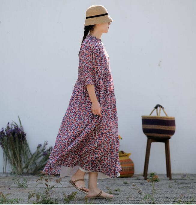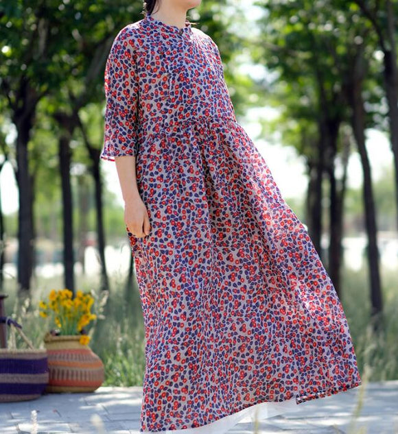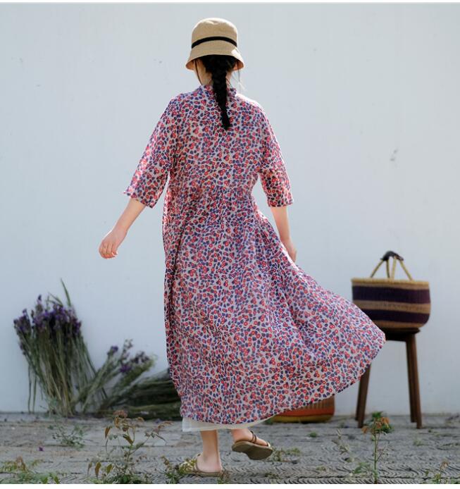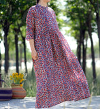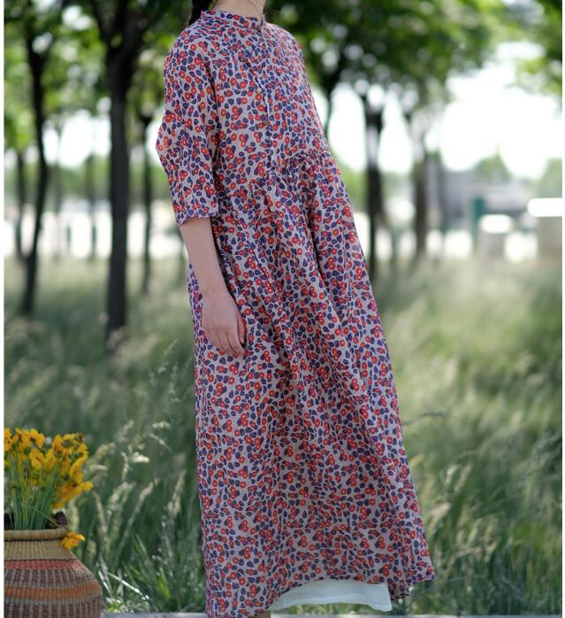 Floral Linen Long Sleeve Loose Dress Women Dress SJP9201229