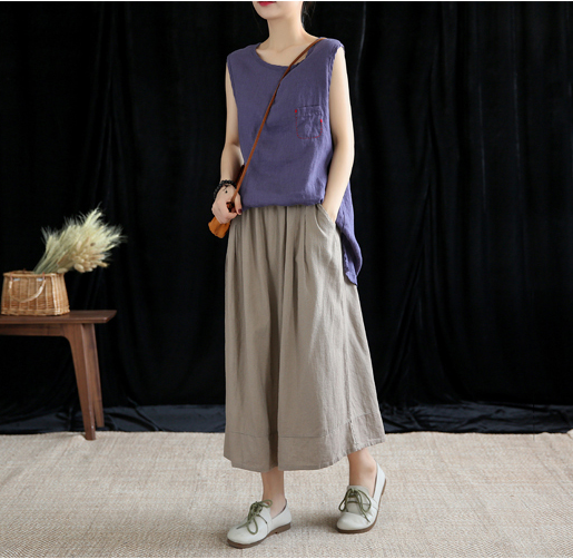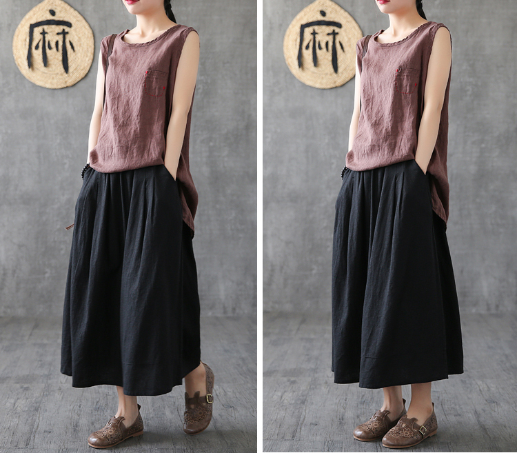 Casual Cotton Linen loose fitting Women's Skirts DZA200622